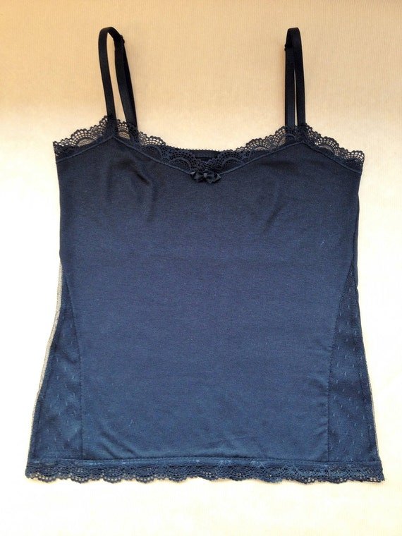 This is a very elegant and confortable camisole which can be wear as an tank top as well as a camisole underneath some thin and see-through top. The straps are ajustable by black metal rings.