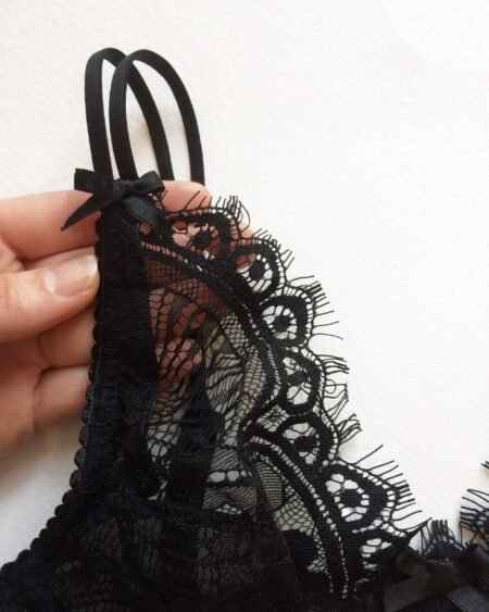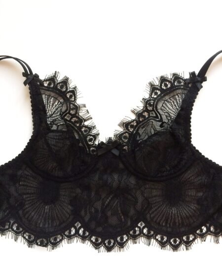 Black lace bra in black french chantilly lace