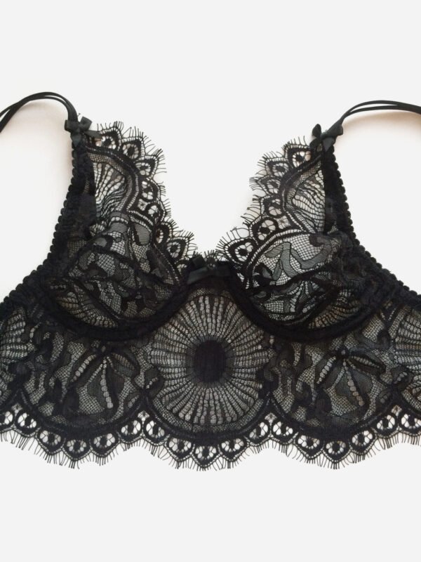 Be the first to review “Black lace bra in black french chantilly lace lining in see-through tulle” Cancel reply