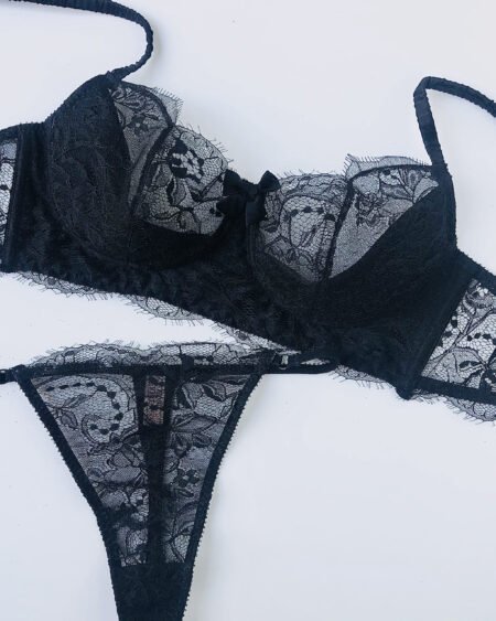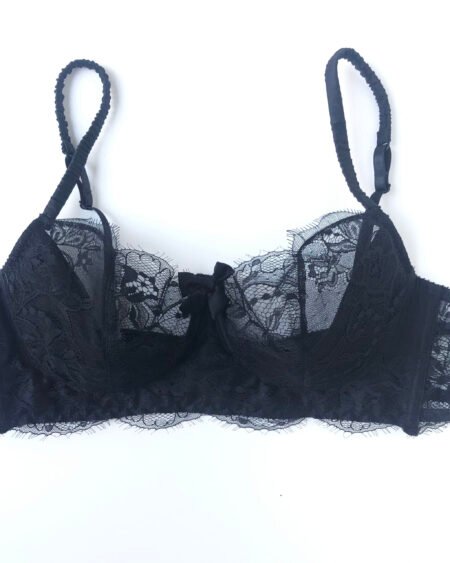 This black half padded bra is made on French leavers lace and matching spandex silk.