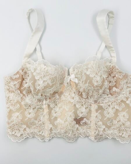 Bridal lace bra in white french Calais lace in nude lining – longline bralette – soft cup bra – lacy bra – soft bra – lace bras – lace lingerie bra