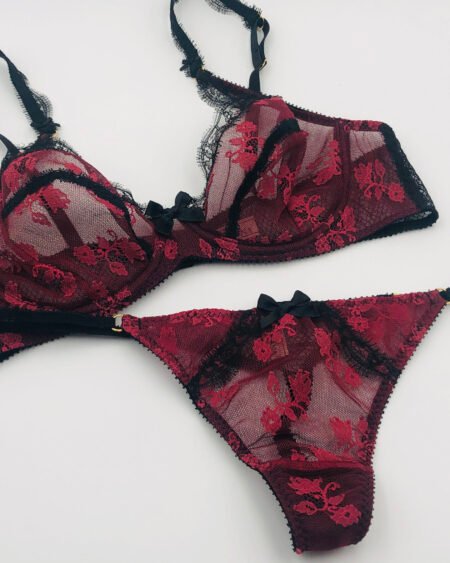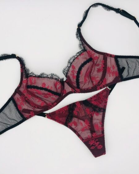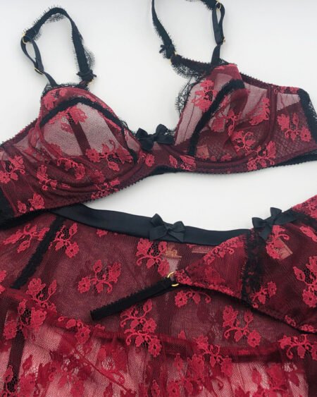 This dark red lace bra is constructed to be a full cup bra. Highly supportive with decortive straps and underband for support.