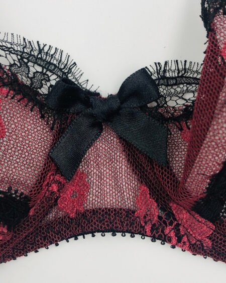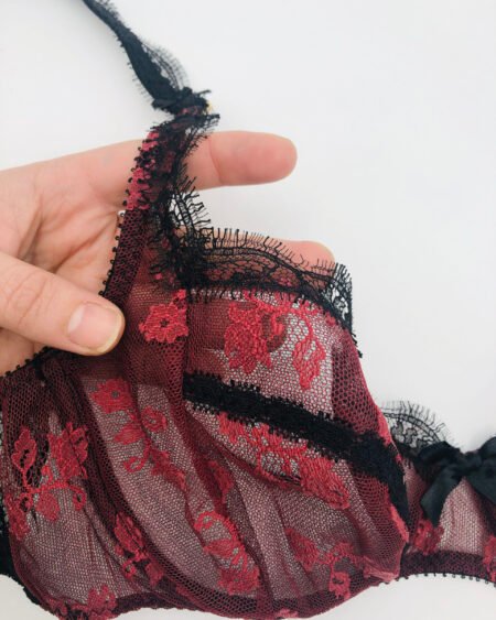 This beautiful lace bra is lined with non-stretch invisible black mesh. The strength of the non-stretch mesh offers beautiful support.