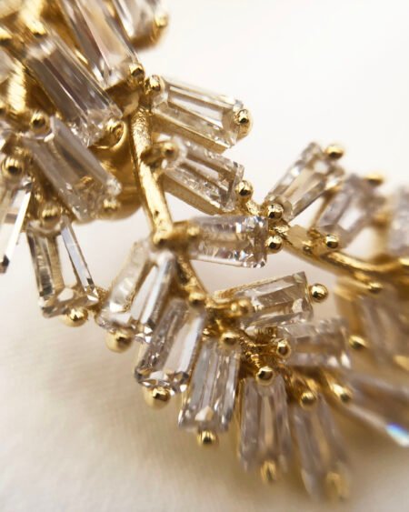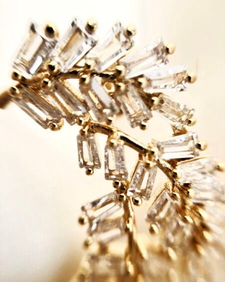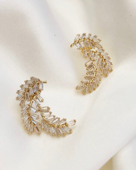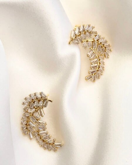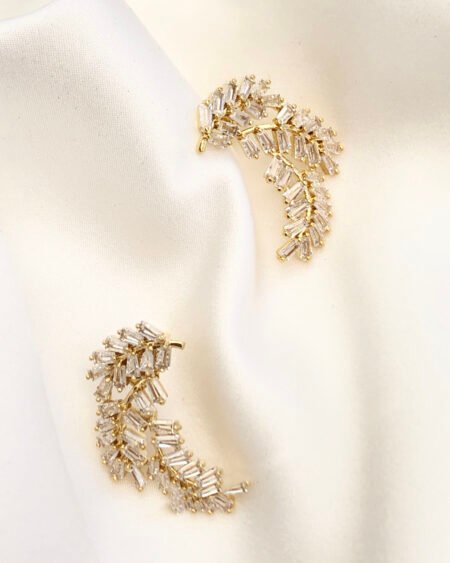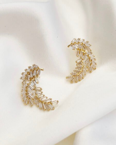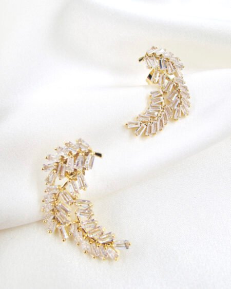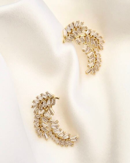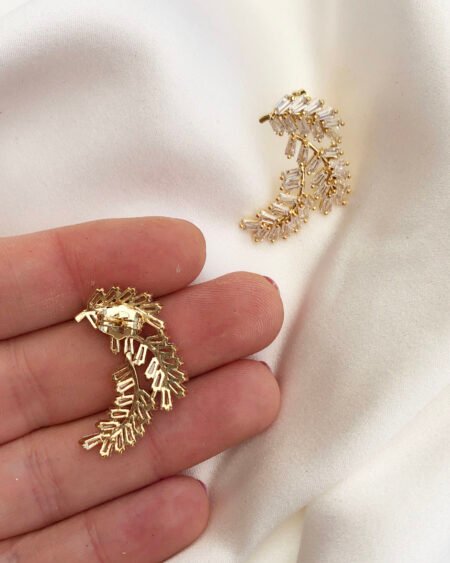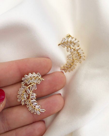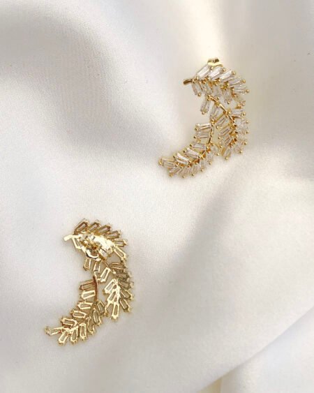 Gold earrings with zirconium – leaves shapes with zircon crystal