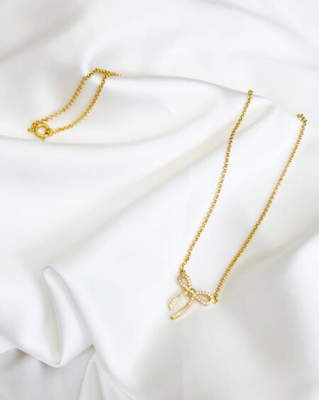 Gold necklace wit crystal- Necklace with bow in Zircon crystal on gold chain