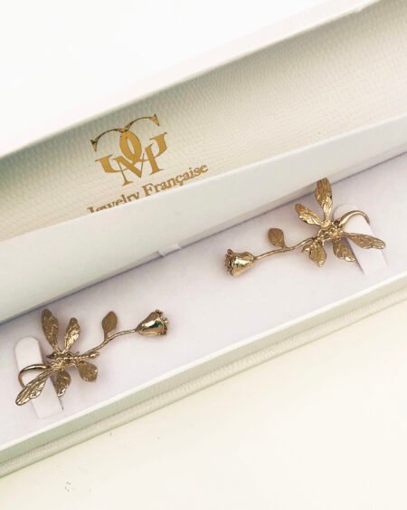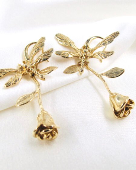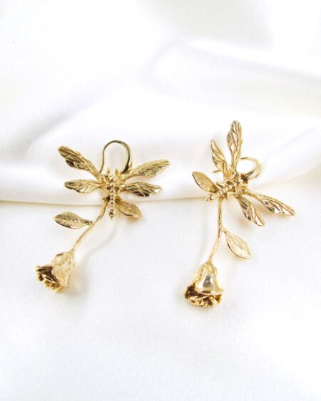 Gold plated earrings – unique design rose with butterfly