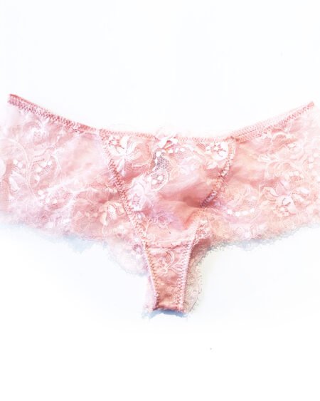 The silk is soft and not see through on the front. The lace applique is adding a beautiful detail. The cut of that black panties is a french cut for the back, which means it shows slightly the bottom of the bottom cheeks.