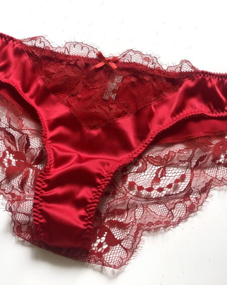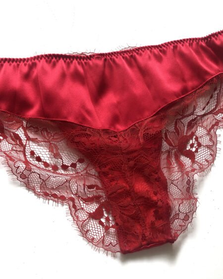Red silk and lace panties – Red lace panties – Lace brief – Lace tanga – Red silk lingerie