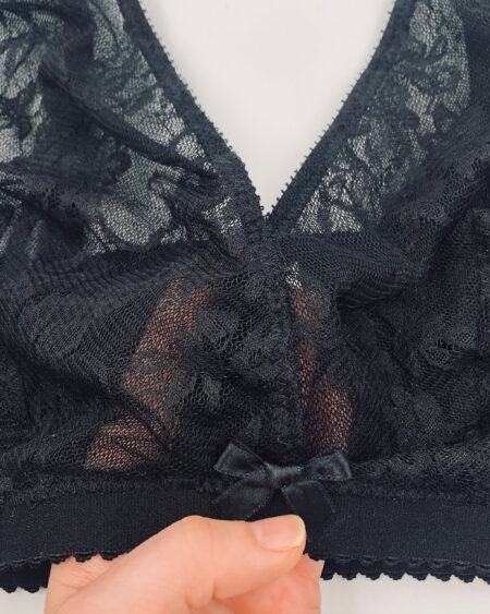 I’ve handmade this bralette with a very soft stretch lace, lining with powermesh for support and strength.