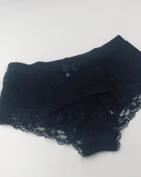 These sheer panties are made from black lace and black lace trim. With the large waistband, it is comfortable at any time and the french cut knickers offer a beautiful and sensual back coverage. The fabric is so comfortable for an everyday item!