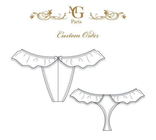 This Silk panties with red lace frills , are made in stretch silk and Chantilly lace. It is a G-string cut. Beautiful detail on the side. It’s sensual but always in delicacy.