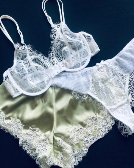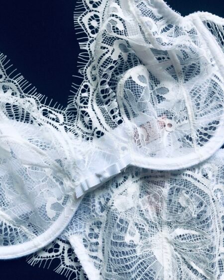 I’ve created that white sheer lace bra, first with a drawing for the harmony of the lines and then as a sculpture on the mannequin to find the balance of volumes and always keeping in mind the sensuality and the power of the final garment. I wanted a cup highly fixed on the straps with a deep neckline, in order than regarding what we are wearing the lace of the top cups can show a bit and add detail to the simplest dress or top.