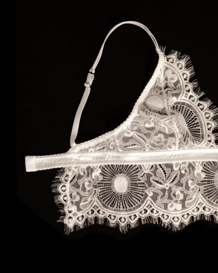 I’ve created that top, for a client’s request. The design of the Chantilly lace bra offers the comfort and the freedom of a version without underwire. I wanted to keep the nice neckline with the delicate edge of eyelashes of the lace.